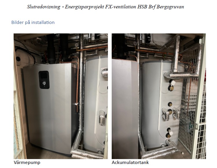Energisparprojekt FX-ventilation HSB Brf Bergsgruvan