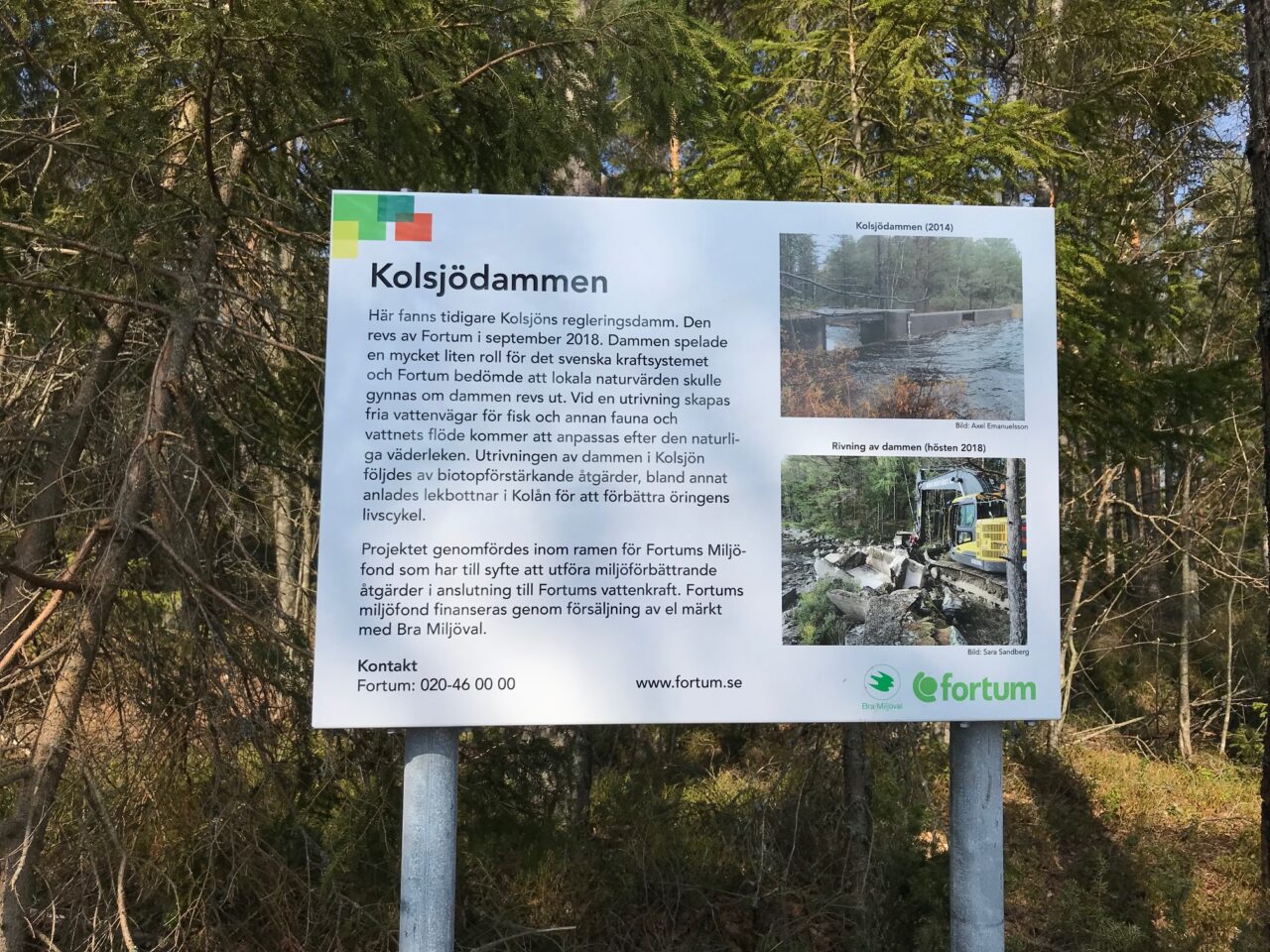 Projektet omfattar utrivning av dammen och mindre biotopåterställande åtgärder i samband med detta. Kolsjön omges av ett riksintresse för naturvård och ett riksintresse för turism som ligger ca 2 km väst om dammen.
