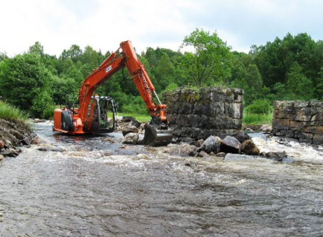 Omlöp, fiskvägar, flodpärlmussla, mm. Ålgårda och Hjälm.